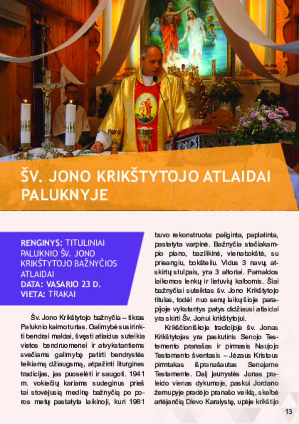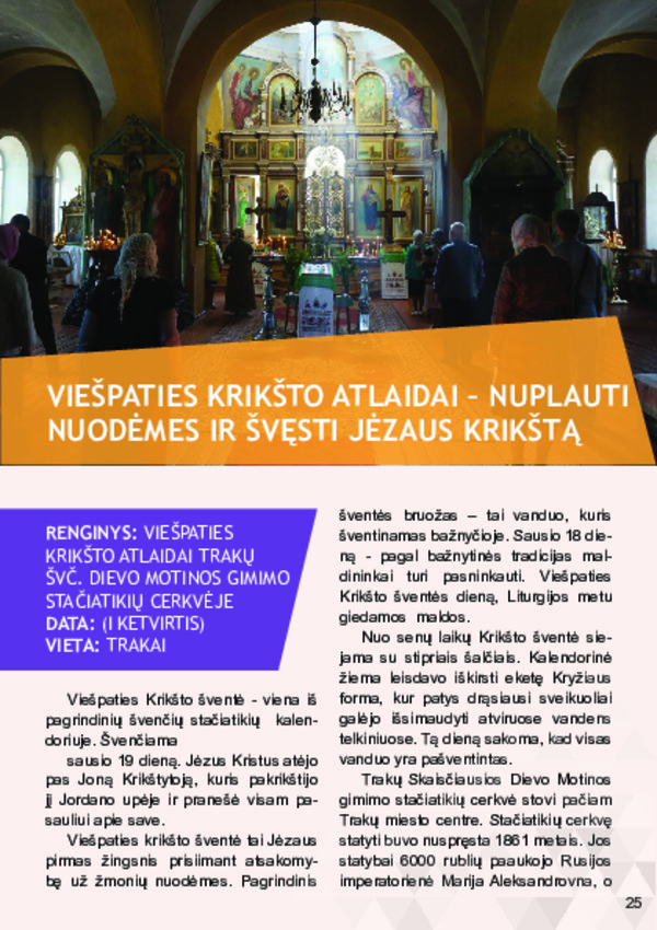 Bažnyčios liturginiuose metuose šventės yra susietos arba su savaitės, arba su mėnesio dienomis, todėl susidaro du tarpusavyje persipynę švenčių ciklai: liturginių laikų ciklas ir švenčių ciklas. Liturginės dienos gali būti sekmadieniai, eilinės savaitės dienos, vigilijos (švenčių išvakarės), oktavos (didelių švenčių minėjimas per aštuonias dienas) bei šventės. Trakų rajono nematerialaus kultūros paveldo renginiai pagal liturginį kalendorių sudaro didžiausią dalį tarp visų nematerialaus kultūros paveldo renginių.